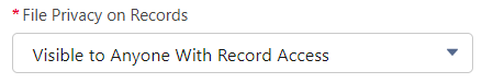 - Find File Privacy on Records field in the popup. By default, this is set to Visible to Anyone With Record Access.