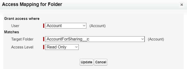 As a result, if a folder has a reference to Account For Advanced Customers, then it gets shared with customers whose accounts are connected to Account For Advanced Customers: