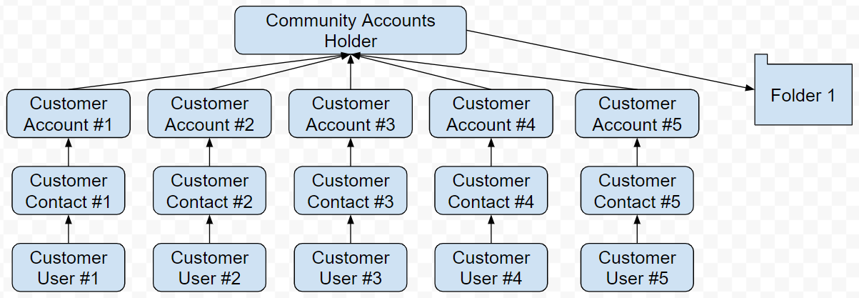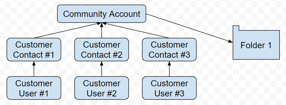 As a result, if a folder has a reference to “Community Account“, then it gets shared with all customers, because their contacts belong to this account. The sharing flow will look like this: