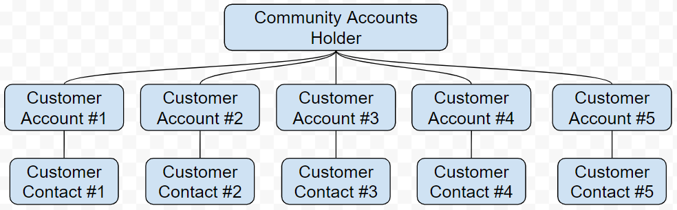 - Implement a mechanism that fills the ParentAccount__c field in the Account object to join all customer accounts under Community Accounts Holder.