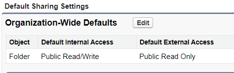 - Use the Manage sharing settings for: filter to show only settings related to the Folder object;