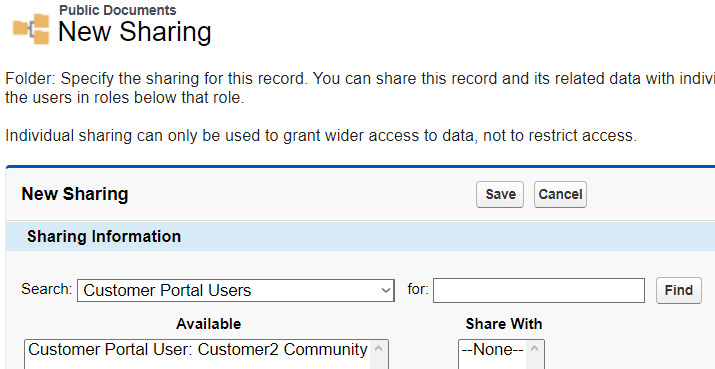 If your community users have more lightweight licenses, e.g., Customer Community, skip this section and go to “Partial Access – Specific sharing features”.