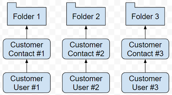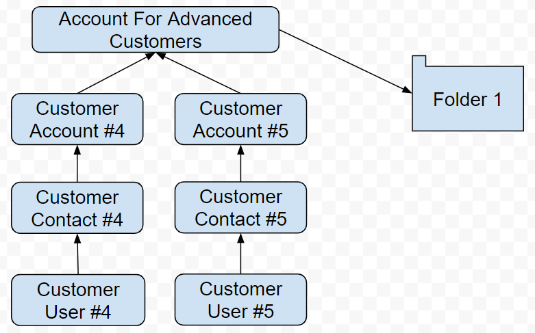 As a result, if a folder has a reference to Account For Advanced Customers, then it gets shared with all customers whose contacts belong to this account. The sharing flow will look like this: