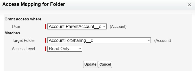 So, recalculation is needed to re-create all sharings from the beginning. - Technically, recalculation is based on the APEX class that represents a batch job. In our case, this batch job could look through all folders and apply the logic similar to what we have in the example with a trigger.