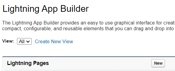 - If you want to create a new page without the app, go to Lightning App Builder in Setup and click New.
